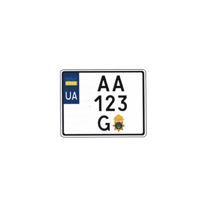 Нові мотоциклетні номерні знаки призначені для Національної Гвардії України та є одним з найсвіжіших типів номерів, які зареєстровані з 2019 року. Вони зроблені згідно зі стандартами ДСТУ (3650:2019) та мають квадратну форму. У нашому каталозі Ви можете знайти та замовити будь-який тип автономерів.