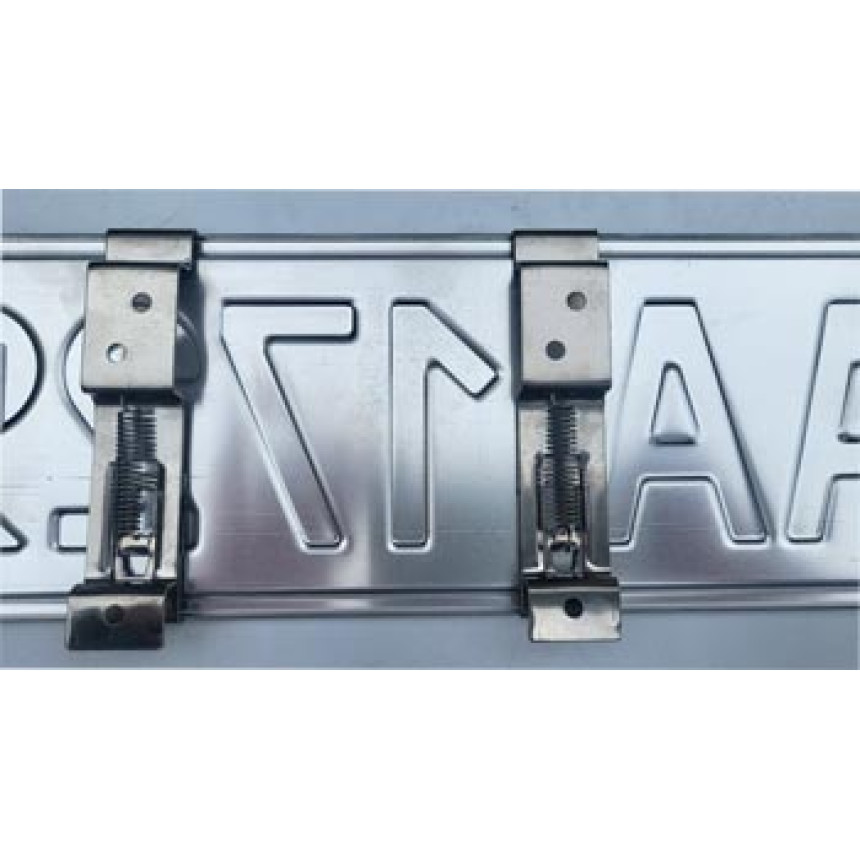Металевий пружинний тримач для автомобільних номерів - це надійний та практичний пристрій, який призначений для кріплення номерних знаків на автомобілях. Виготовлений з високоякісного металу, цей тримач забезпечує стійкість до корозії та довговічність.